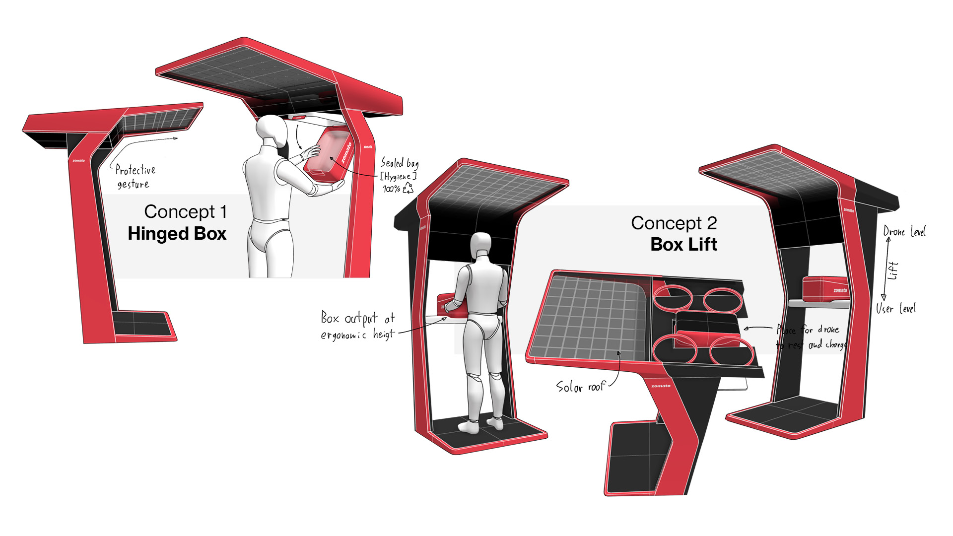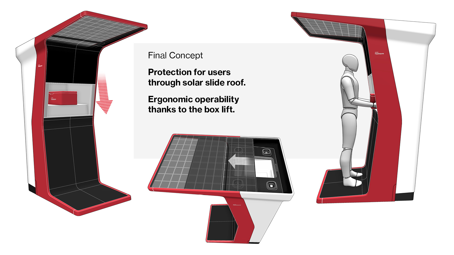 The station‘s solar sliding roof opens when the drone takes off or lands, protecting the landed drone and the station´s interior from the weather.